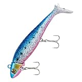 重さは本家VJとほぼ同じなので、よく飛びます。違いの1つはワームの硬さ、VJのアルカリシャッドと比べるとゴツく硬め、またテールの上下も違います。とはいえ本家と比べて特に姿勢がおかしかったりという事はなく普通に泳いでくれます。